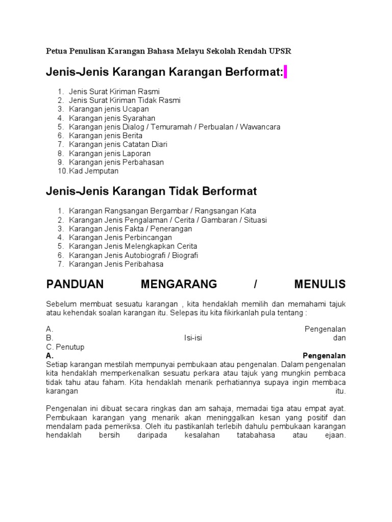 Contoh Karangan Upsr Bahasa Melayu Senarai Tahun 6