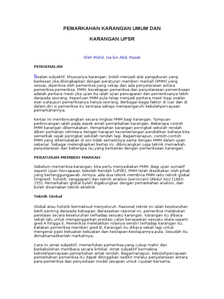 Pdf Contoh Karangan Upsr Norazzizi Ruslee Academia Edu